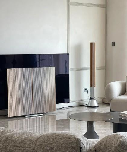 作为BangOlufsen打造的高端电视系列,BeovisionHarmony最吸睛的是其独特优雅的设计。电视配备创新扬声器系统,开启时像蝴蝶展翅般优雅展开,关闭时则巧妙隐藏,既美观又实用。外壳采用高品质木材、织物和铝材,尽显奢华精致,堪称家居中的艺术品。
